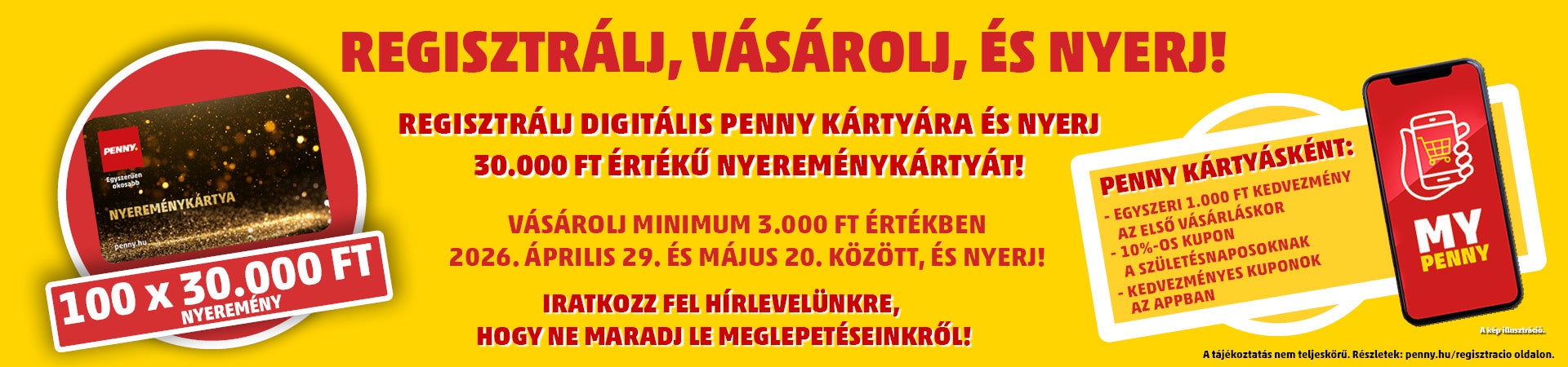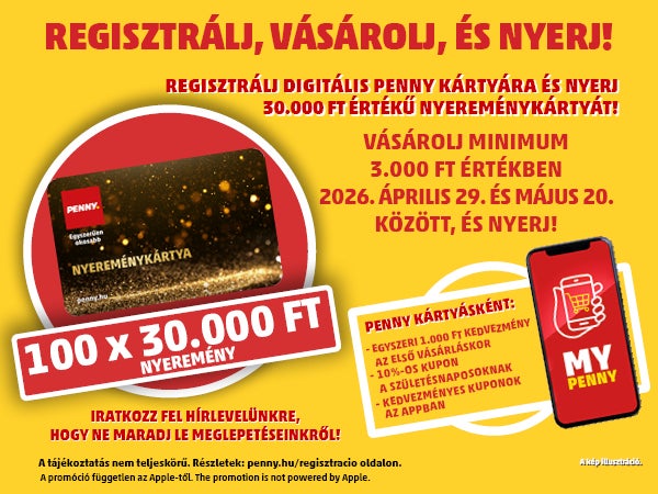 Feliratkozom a PENNY hírlevélre, mert rendszeresen szeretnék információkat és reklámajánlatot kapni az aktuális termékekről, szolgáltatásokról és nyereményjátékokról.
