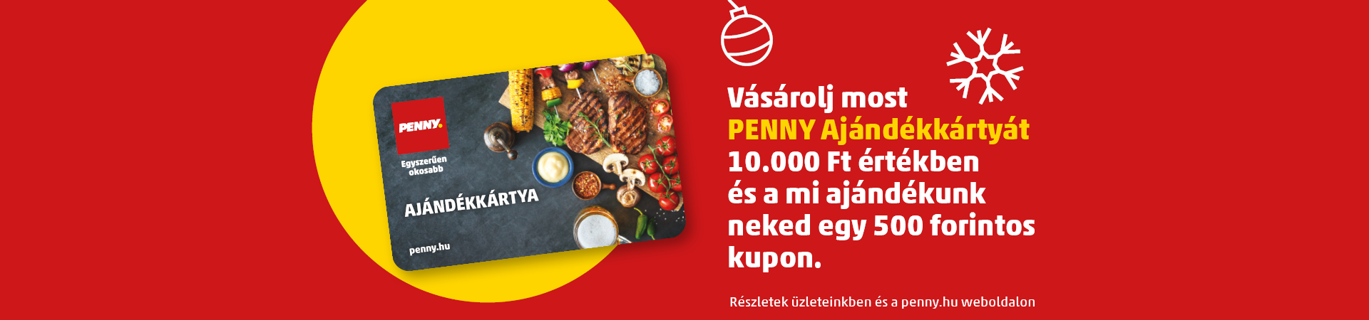 10.000 forintos PENNY Ajándékkártya vásárlása esetén 500 forintos kupont adunk!