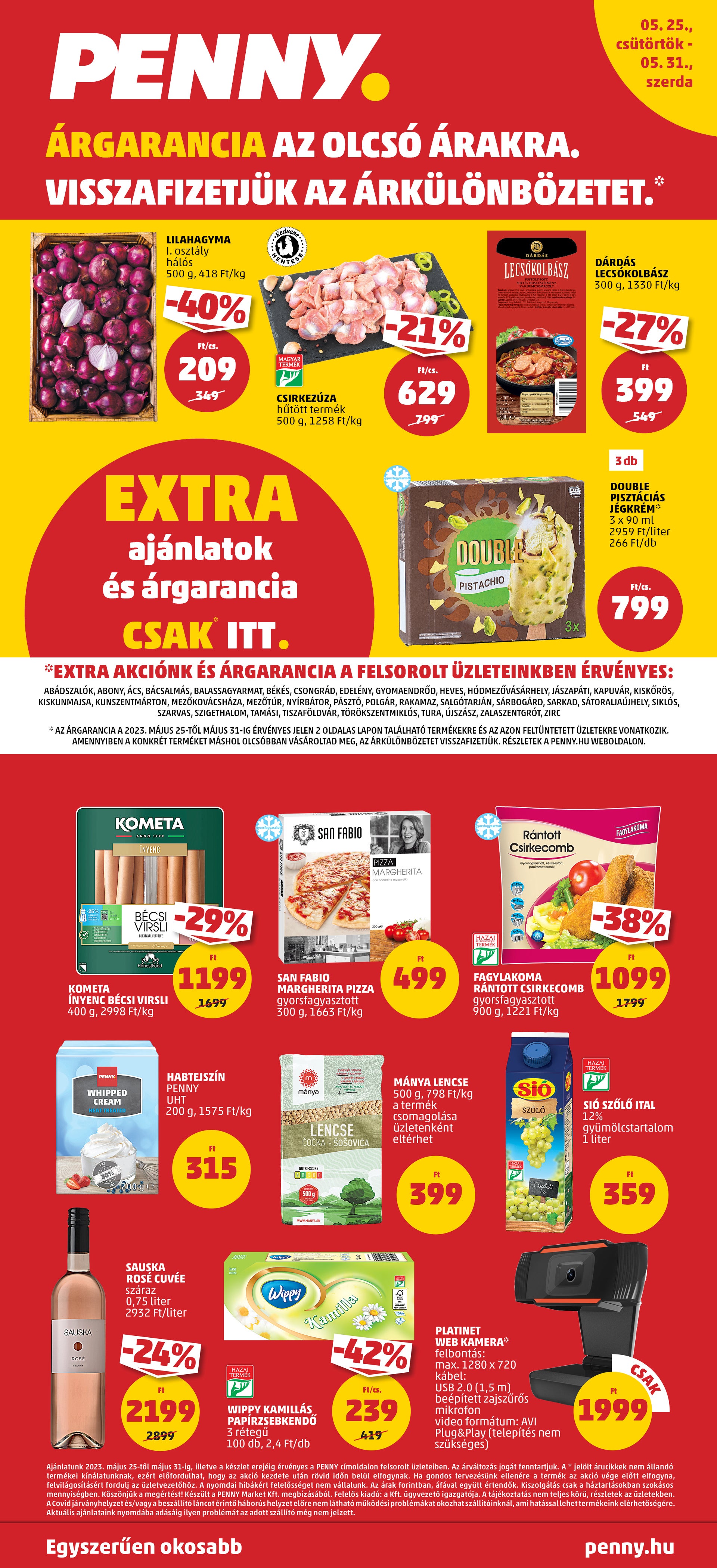 * AZ ÁRGARANCIA A 2023. MÁJUS 25-TŐL MÁJUS 31-IG ÉRVÉNYES JELEN 2 OLDALAS LAPON TALÁLHATÓ TERMÉKEKRE ÉS AZ AZON FELTÜNTETETT ÜZLETEKRE VONATKOZIK.