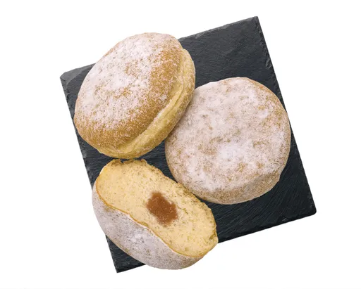 Készre sütött, gyorsfagyasztott, kiengedett élesztős tészta sárgabarack készítménnyel és dekorcukor felülettel