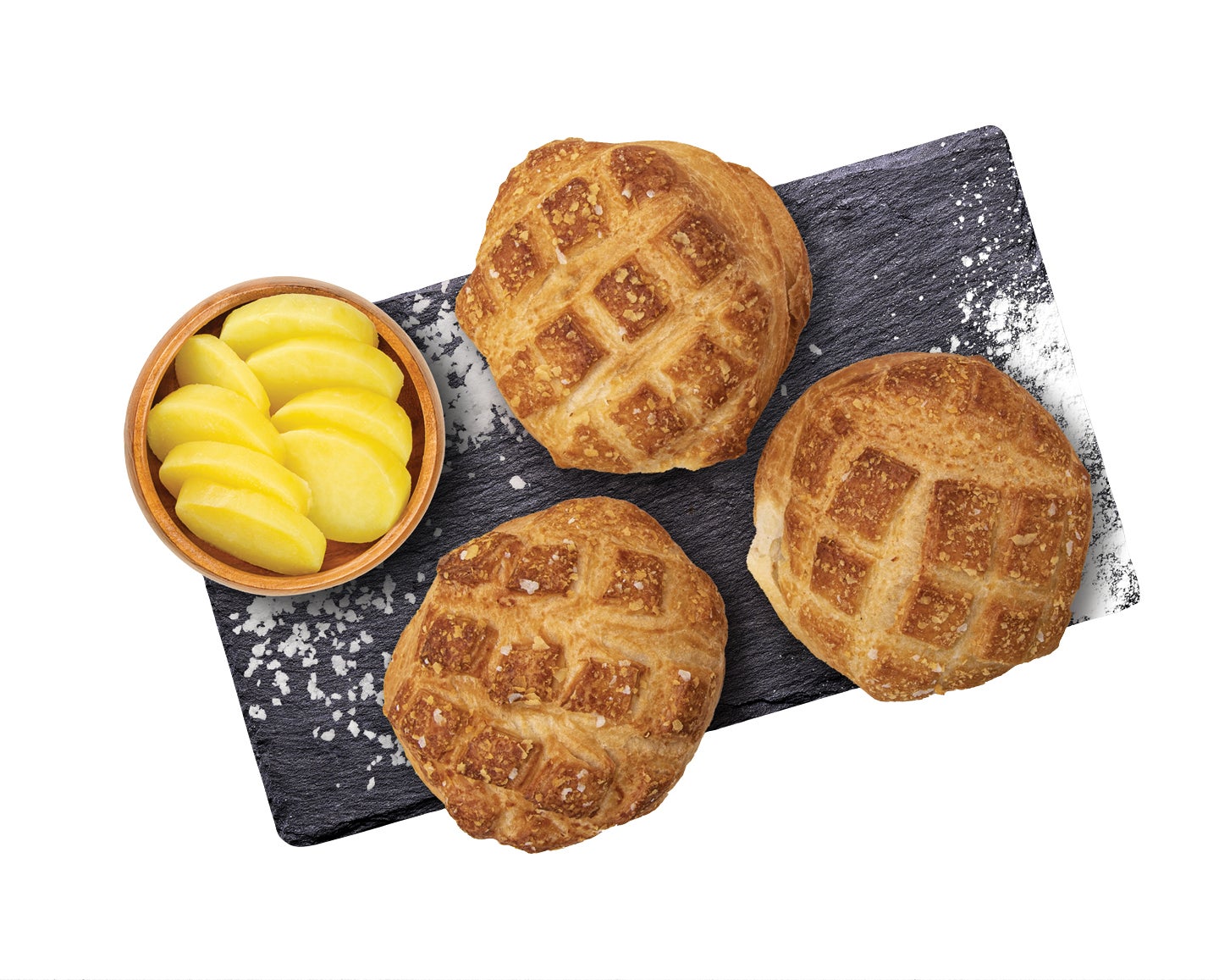 Előkelesztett, gyorsfagyasztott, készre sütött burgonyás tészta.