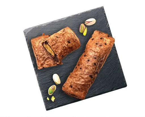 BÚZALISZT, ivóvíz, PISZTÁCIA töltelék I. (14,7%) [kristályukor, növényi olajok (napraforgó, pálma), TEJSAVÓPOR, PISZTÁCIA paszta (min. 7,5%), emulgeálószer (lecitinek), természetes aroma, színezőanyag (klorofillinek réz komplexei)], csokoládés töltelékalap (11,9%) {kristálycukor, étcsokoládé (14%) [kakaómassza, kristálycukor, emulgeálószer (SZÓJALECITIN), aroma (természetes vanília)], zsírszegény kakaópor, módosított burgonyakeményítő (acetilezett dikeményítő-foszfát), teljes kiőrlésű zabpehelyliszt, TOJÁSFEHÉRJEPOR, étkezési só}, napraforgó étolaj, margarin I. {finomított növényi olajok és zsírok változó arányban [növényi zsírok (pálma), növényi olajok (napraforgó, pálma, repce)], ivóvíz, étkezési só (1,5%), emulgeálószer (zsírsavak mono- és digliceridjei), savanyúságot szabályozó anyag (citromsav)}, PISZTÁCIA töltelék II. (4,9%) [kristályukor, növényi olaj (pálma), PISZTÁCIA paszta (min. 15%), sovány TEJPOR, módosított keményítő, TEJSAVÓPOR, emulgeálószer (lecitinek), természetes aroma, színezék (klorofillinek réz komplexei)], pirított száraztészta (3,9%) (BÚZALISZT, friss TYÚKTOJÁS), kristálycukor, sovány kakaópor, margarin II [finomított növényi olajok (pálma, napraforgó), ivóvíz, jódozott étkezési só (0,16%) (étkezési só, kálium-jodát), emulgeálószer (zsírsavak mono- és digliceridjei), étkezési sav (citromsav)], étkezési só, fagyasztást elősegítő keverék [BÚZALISZT, BÚZAGLUTÉN, lisztkezelő szer (aszkorbinsav), enzimek (BÚZA)].