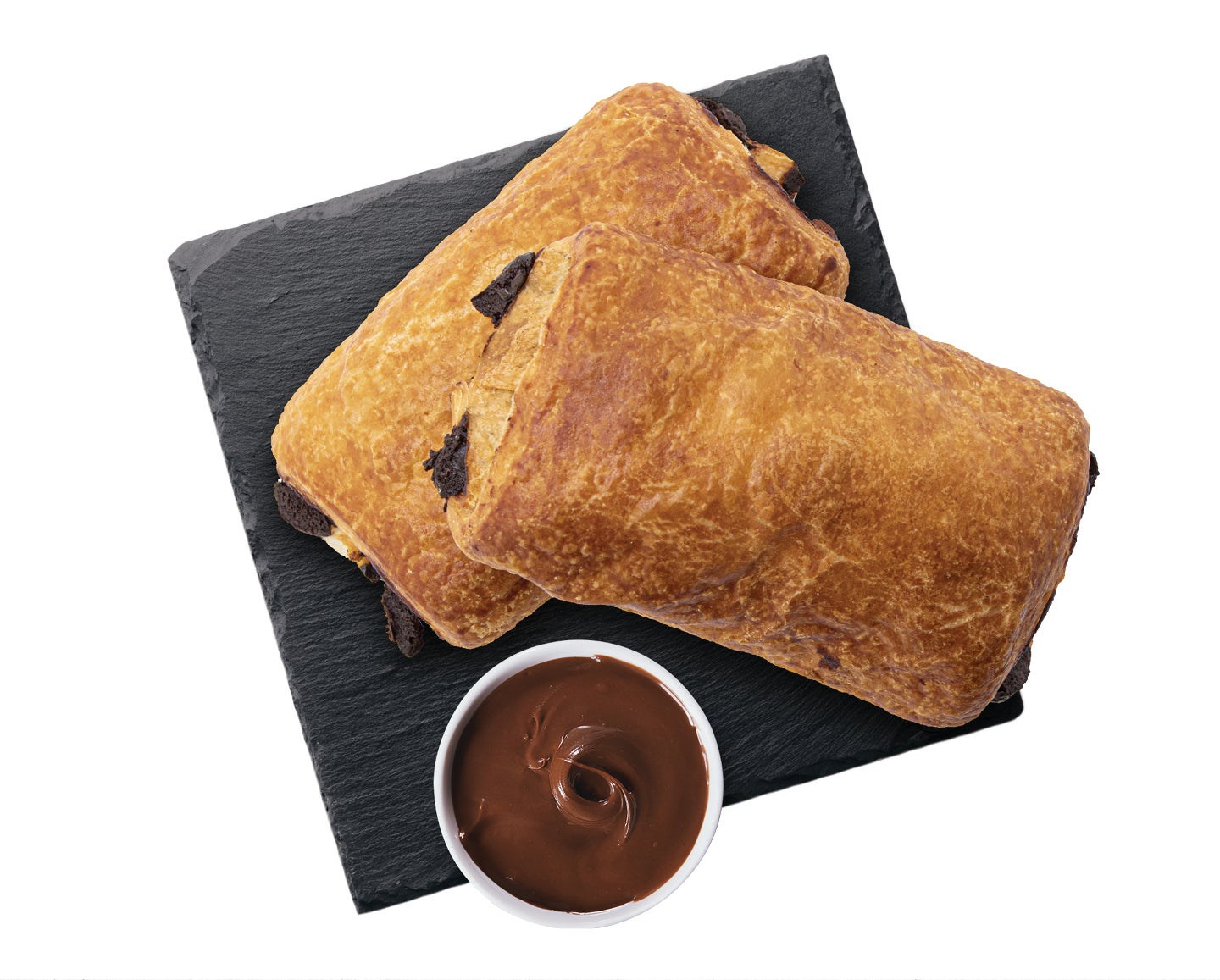 Előkelesztett, gyorsfagyasztott, készre sütött leveles tészta csokoládéporból készült töltelékkel