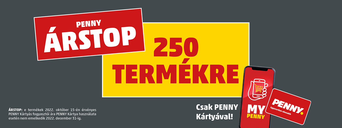 „A PENNY-nél nap mint nap azon dolgozunk, hogy fogyasztóink számára a legjobb ár-érték arányú termékpalettát kínáljuk, és az áremelkedésekből a lehető legkevesebbet érzékeljék. Azt tapasztaljuk, hogy a közelmúlt gazdasági folyamatokat is befolyásoló eseményei miatt a vevőink számára a kiváló minőség mellett kiemelten fontosak a kedvező árak és az akciók. A hűségprogramunk plusz kedvezményeket biztosít, segítséget nyújtva a mindennapi bevásárlások során a kiadások mérséklésében. Ennek keretében év végéig 250 termékünket árstoppal láttunk el, tehát az ilyen jelzésű árucikkeink október 15-én érvényes fogyasztói árai a PENNY Kártya használata esetén 2022. december 31-ig változatlanok. Továbbá vásárlóink a hűségkártya használatával akár 50 százalékos kedvezményt is kaphatnak egyes termékek megvásárlása esetén” – nyilatkozta Kazatsay Eszter, a PENNY magyarországi kommunikációs vezetője.