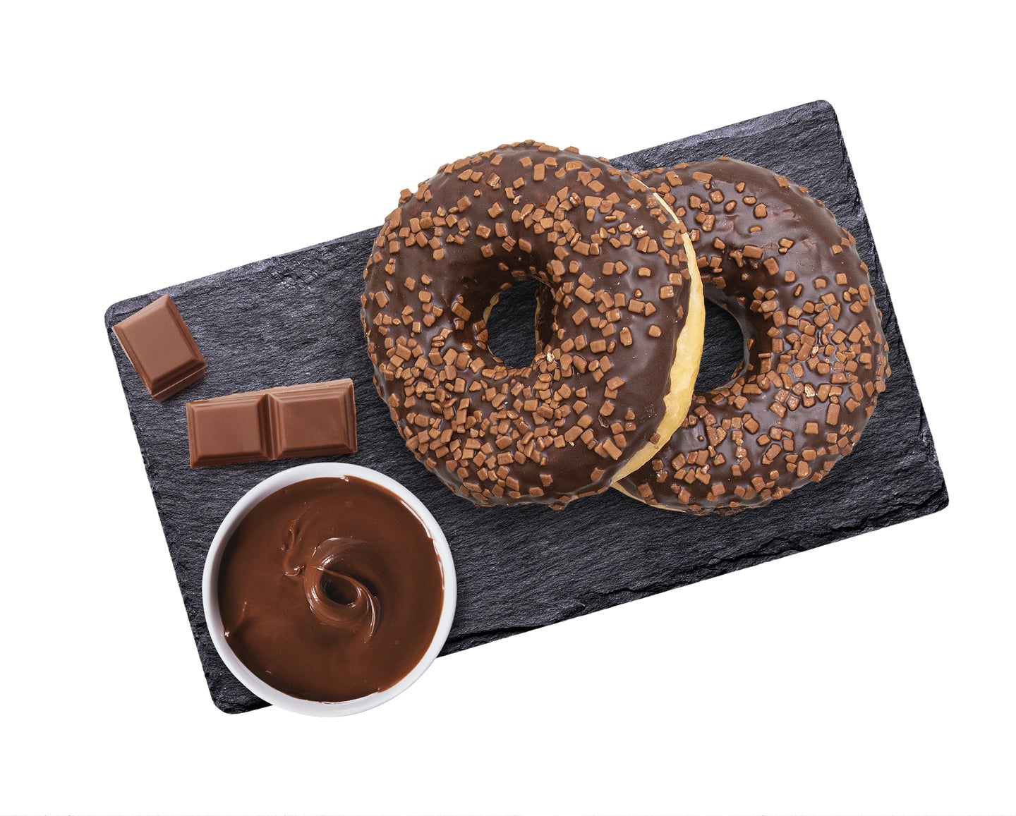 Gyorsfagyasztott, kiengedett gyűrűs fánk csokoládé ízű bevonattal