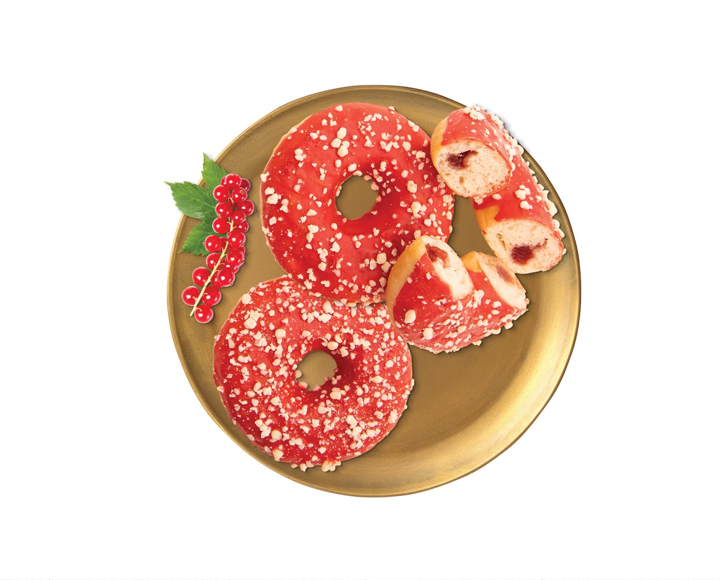 BÚZALISZT, töltelék (19,7%) (cukor, vörös ribizli püré, glükóz szirup, módosított keményítő, étkezési sav (citromsav), zselésítőanyag (pektin), természetes aroma, ivóvíz), ivóvíz, pálmaolaj, cukor, fehér csokoládé (5%) (cukor, kakaóvaj, teljes TEJPOR, TEJSAVÓPOR, LAKTÓZ, emulgeálószer (lecitinek), természetes aroma (vanília)), pálmamagzsír, repceolaj, élesztő, emulgeálószerek (zsírsavak mono- és digliceridjeinek mono- és diacetil-borkősav-észterei, zsírsavak mono- és digliceridjei, nátrium-sztearoil-2-laktilát, lecitinek), kókuszétolaj, SZÓJALISZT, térfogatnövelő szerek (nátrium‐karbonátok, difoszfátok), jódozott étkezési só (étkezési só, kálium-jodát), reteksűrítmény, napraforgó-étolaj, BÚZAKEMÉNYÍTŐ, pálmazsír, színezék (lutein), természetes aroma, szárított élesztő, antioxidáns (aszkorbinsav).