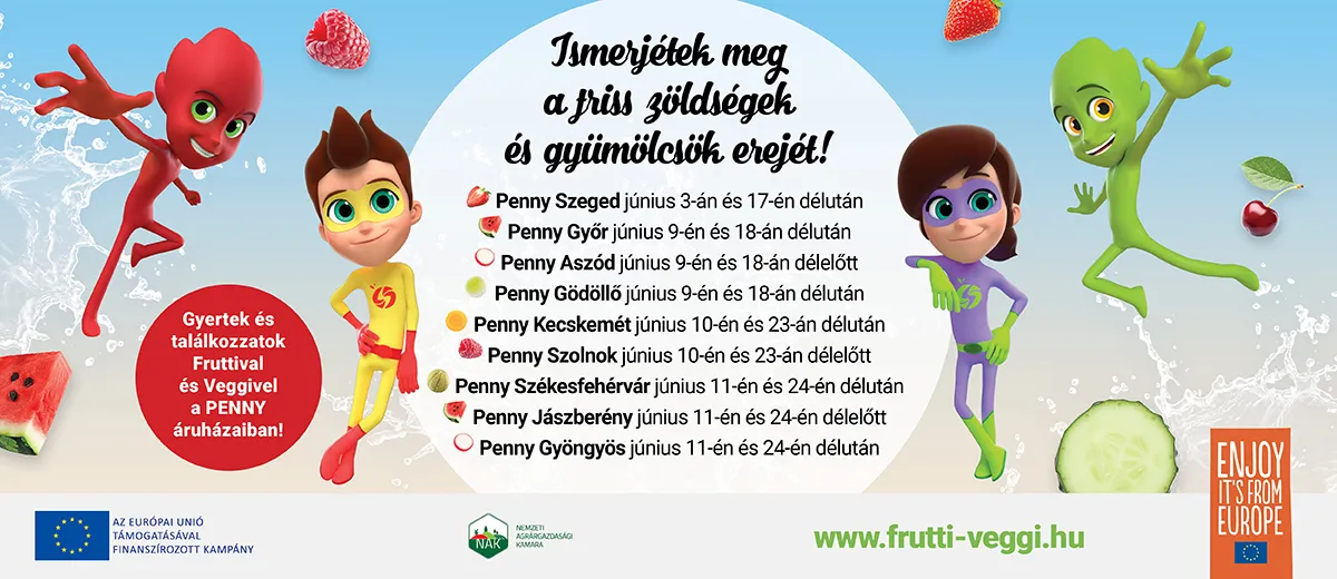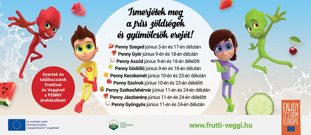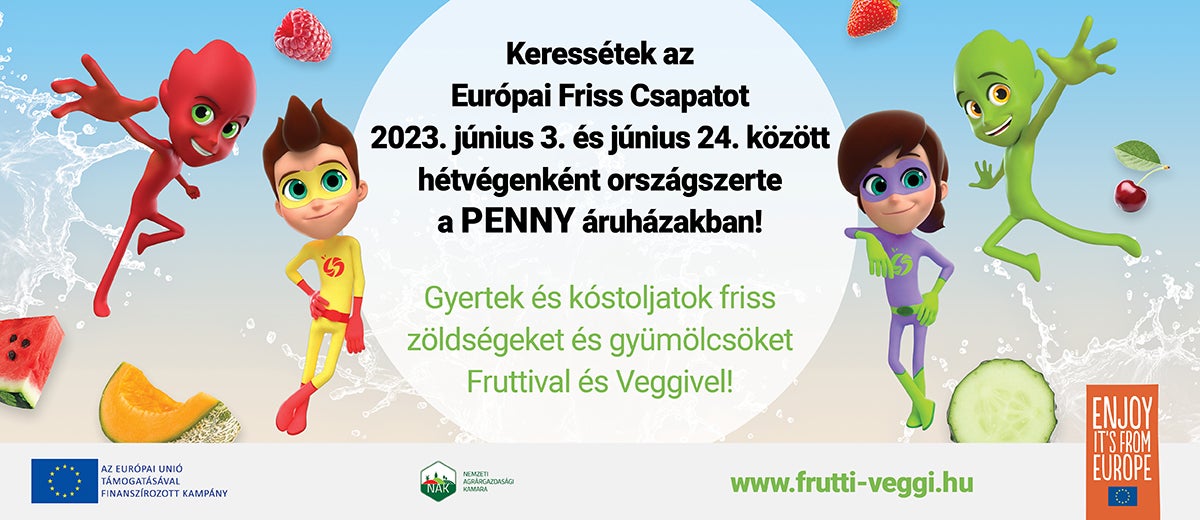 2022. tavaszán indult útjára a Nemzeti Agrárgazdasági Kamara (NAK) „Európai Friss Csapat – Az ízek ereje” elnevezésű programja, amelynek középpontjában a zöldség- és gyümölcsfogyasztás népszerűsítése állt. A PENNY számára évek óta kiemelt cél, hogy növelje a magyar termékek számát az üzletekben. Ennek eredményeként az árucikkek közel kétharmadát hazai beszállítók biztosítják jelen pillanatban is, és folyamatosan azon dolgozunk, hogy ez az arány a jövőben még magasabb legyen. Ráadásul a nyári időszakban szinte száz százalékban magyar termelőktől származó termékek biztosítják üzleteink zöldség és gyümölcs kínálatát. Éppen ezért a PENNY is csatlakozott a NAK kezdeményezéséhez a tavalyi évhez hasonlóan, 2023. június 03. és 24. között várjuk kijelölt üzleteinkben az érdeklődőket.