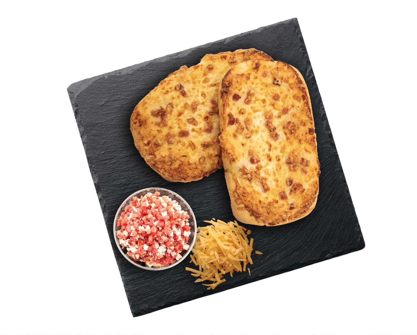 BÚZALISZT,ivóvíz, TEJFÖL, bacon, SAJT, étkezési só, BÚZAGLUTÉN, napraforgó olaj, élesztő, sütőipari keverék [BÚZALISZT, emulgeálószer (E472e), BÚZAGLUTÉN, lisztkezelőszer (aszkorbinsav)], módosított keményítő (E1422), fokhagyma por.
