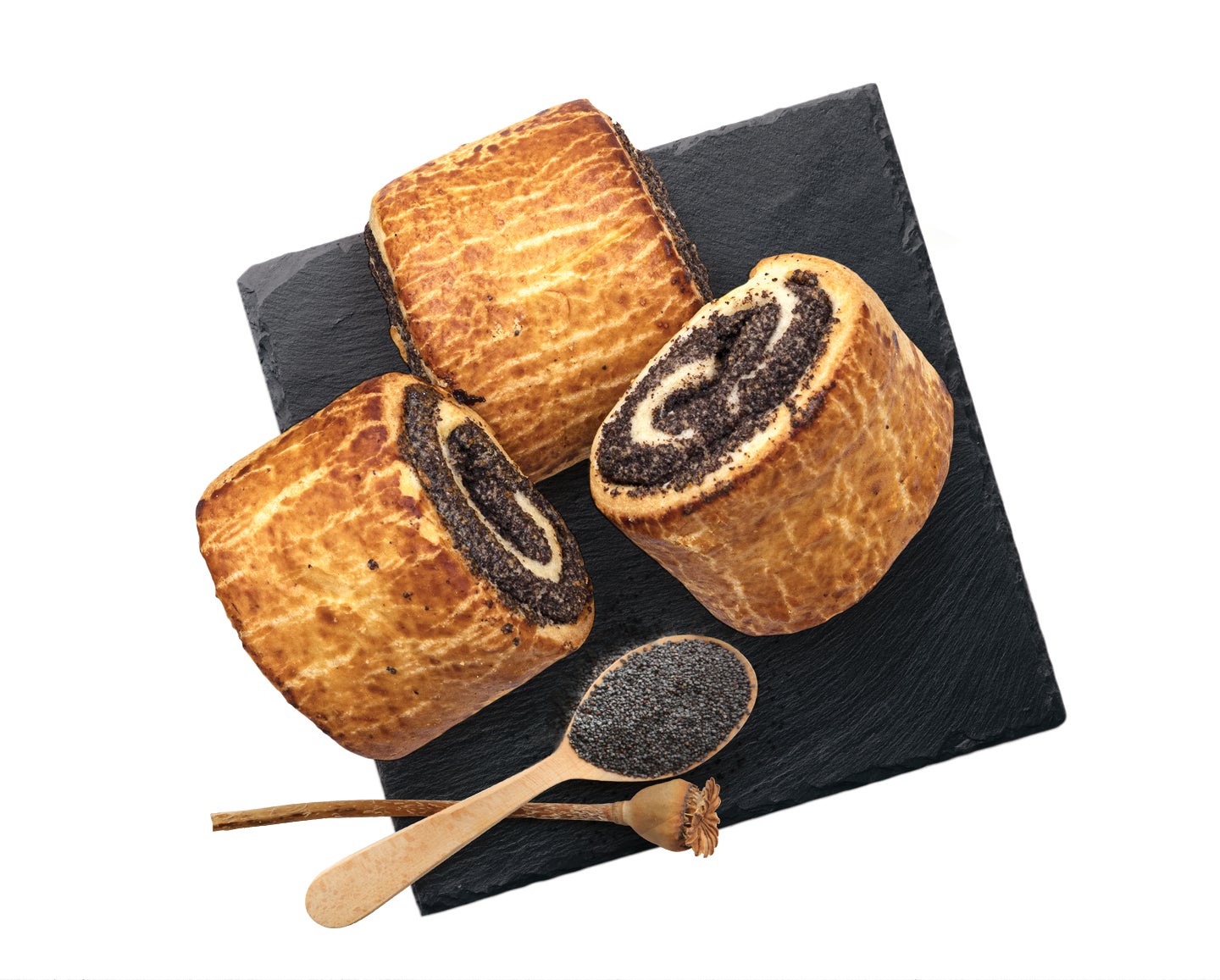 Elősütött, gyorsfagyasztott majd készre sütött mákos tekercs