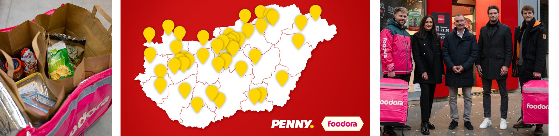 A PENNY és a foodora 2021 áprilisában indította el az együttműködését, amely azóta folyamatosan bővül, országosan már 43 településen elérhető a szolgáltatás. Az online rendelés a PENNY üzletekből növekvő népszerűségnek örvend, egyre többen választják az otthonról történő kényelmes vásárlást, a minőségi és jó ár-érték arányú termékeket. A legnépszerűbb rendelt tételek között szerepelnek a különböző csomagolt pékáruk, a Sissy 2,8%-os tej, a PENNY friss tojás és a Kedvenc Hentese csirkemellfilé.