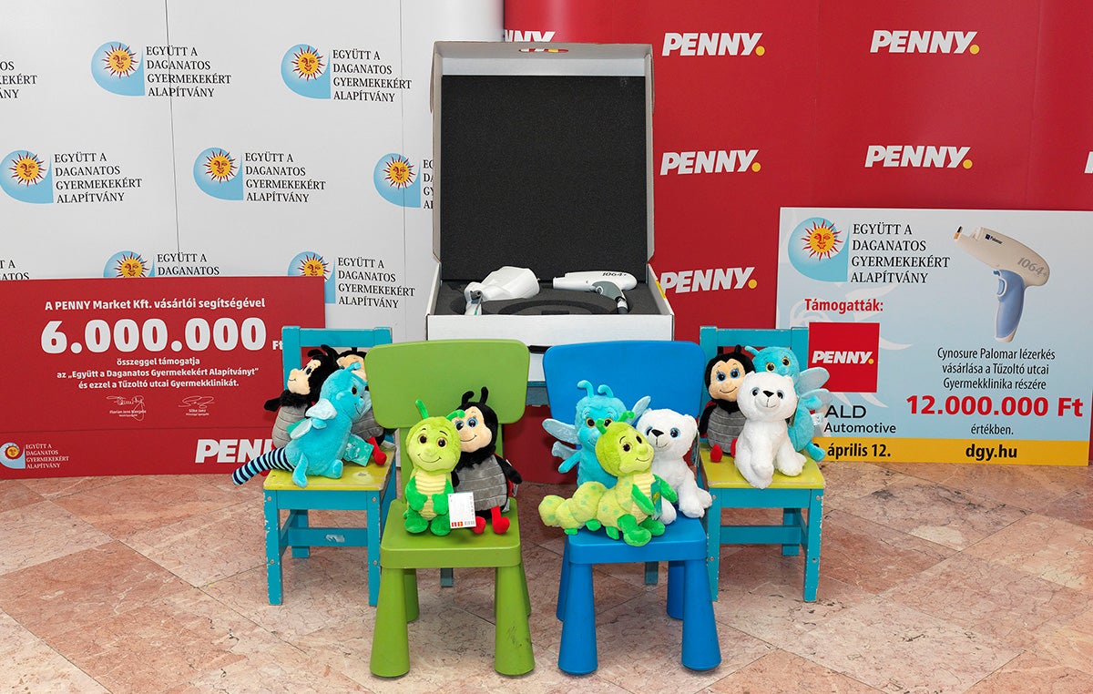 Immár 15 éve, hogy a PENNY vásárlóival karöltve rendszeresen támogatja az Együtt a Daganatos Gyermekekért Alapítványt, hogy így segítse a nagybeteg kicsik felépülését. A vállalat ezúttal az érbetegségben szenvedők kezeléséhez egy nélkülözhetetlen lézerkészülék beszerzését támogatta hatmillió forinttal, amelyet az alapítvány a Semmelweis Egyetem Gyermekklinikájának juttatott el.