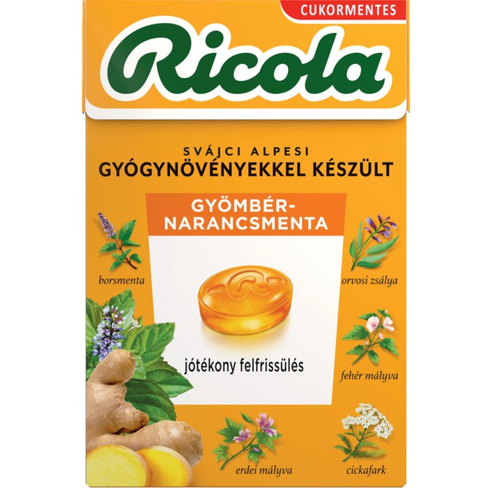 RICOLA GYÖMBÉR-NARANCSMENTA ÍZŰ CUKORKA