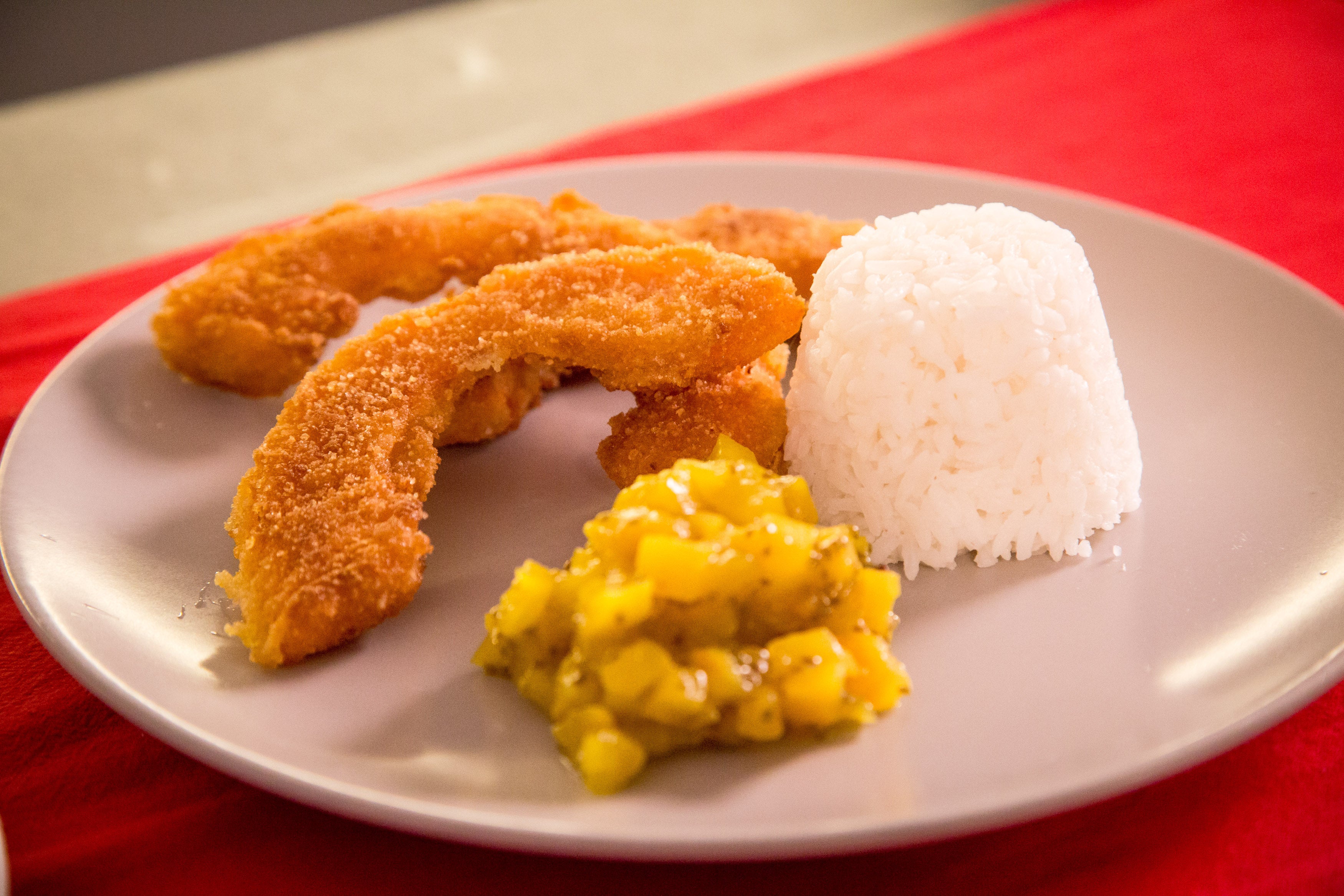 A fagyasztott gyümölcsmixet, 2 db banánt, a mogyoróvajat és a növényi tejet egy turmixgépben krémes állagúra turmixoljuk. A sűrű smoothie-t elosztjuk két tányérba, 2 banánt felkarikázunk, az epret vékony szeletekre vágjuk.