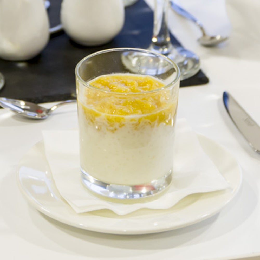 A gyümölcsöt villával összenyomkodjuk, majd harmadát egy pohár aljába rétegezzük. Rárakjuk a chia puding felét, majd a maradék gyümölcs felét. Ezután rárétegezzük a puding másik felét, majd az összenyomkodott gyümölcs maradékát.