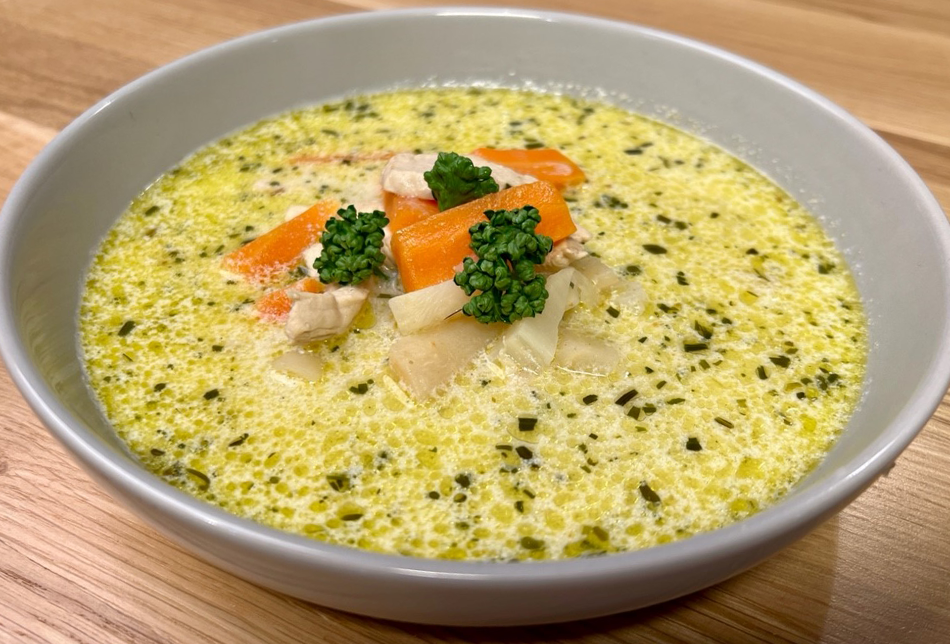 Közepes lángon főzzük, amikor a burgonya már kezd puhulni, belekeverjük a tejfölt és összeforraljuk. A végén petrezselyemmel díszítjük.