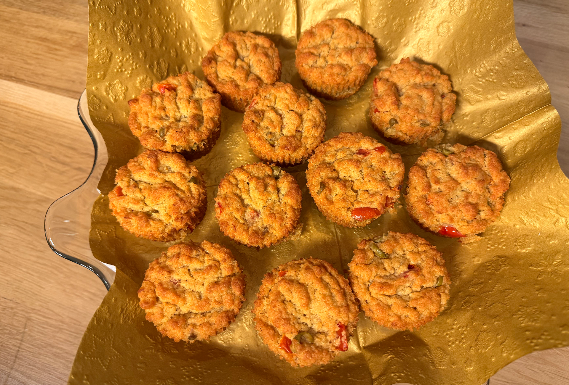 Ezzel a keverékkel töltsük a kivajazott muffinformákat, és már mehetnek is a 180 fokra előmelegített sütőbe 15-20 percre sülni.