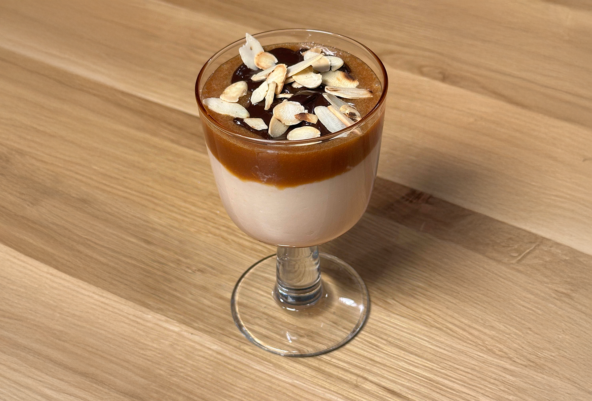 A cukrot karamellizáljuk, majd ha szép aranybarna színe lett, hozzáadjuk a tejszínt, addig kavargatjuk, amíg a karamella elolvad benne és lassan ugyan, de besűrűsödik. Ha kicsit kihűlt, a poharakban elosztjuk.