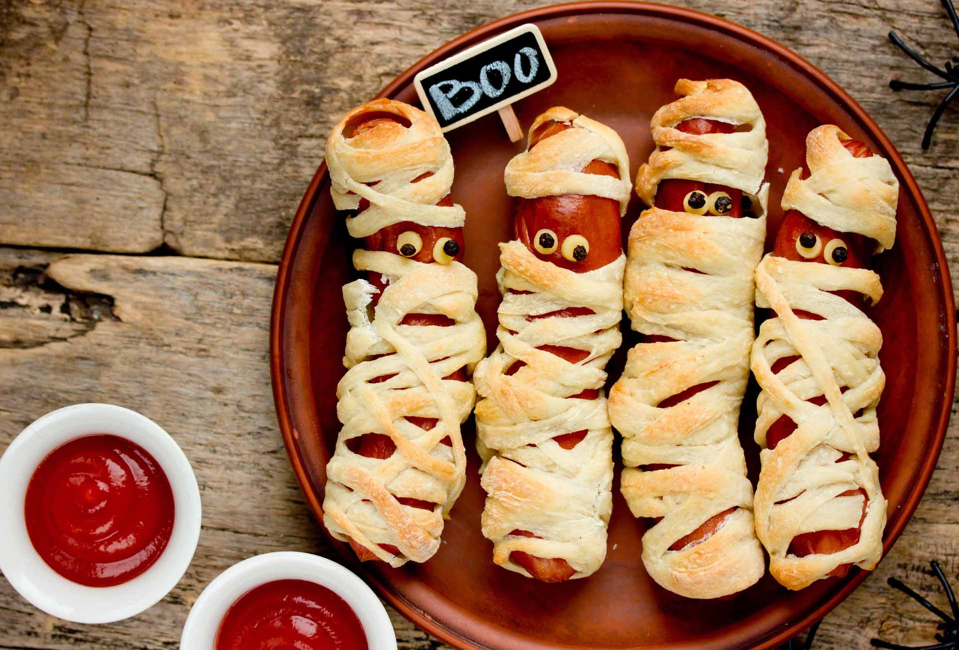 11 lépésA leveles tésztából 1 cm-es csíkokat vágunk, és a virslik köré tekerjük, úgy, hogy egy kis rés szabadon maradjon az arcnak. 22 lépésSütőpapírral bélelt tepsibe tesszük őket, a szemeket két pötty mustárral rajzoljuk. 33 lépésA tésztát megkenjük a tojássárgájával. 44 lépésElőmelegített sütőben megsütjük.