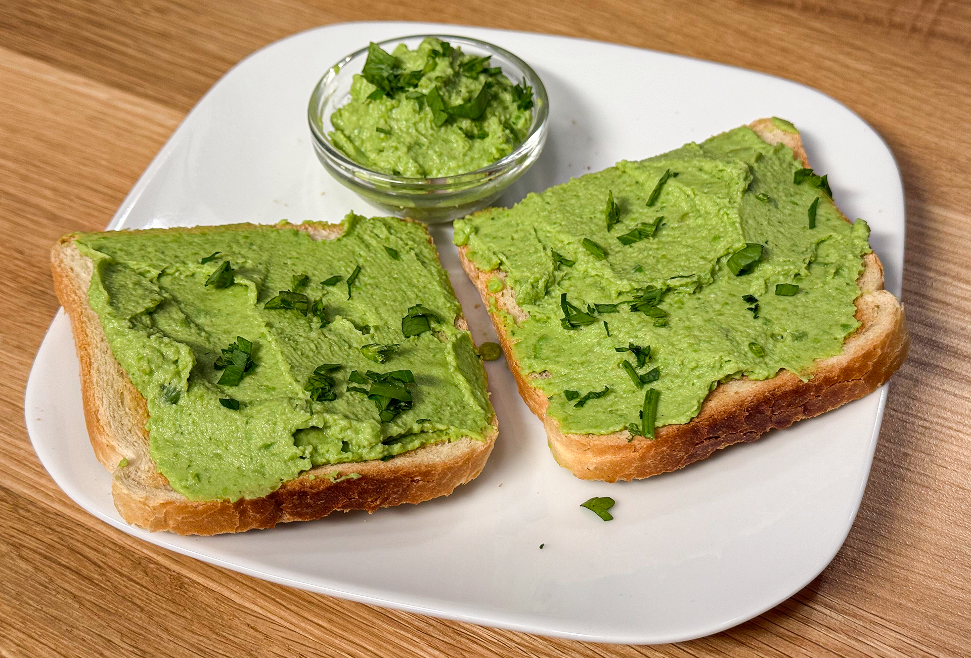 A kenyereket megpirítjuk, gazdagon megkenjük a krémmel és pár levél petrezselyemmel díszítjük. Frissítő reggeli, amit még a legrohanósabb reggeleken is egyszerűen összedobhatunk.