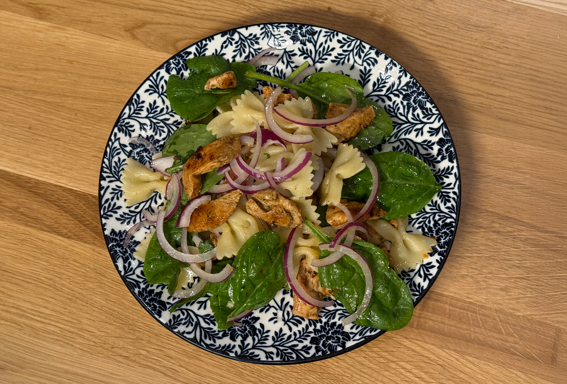 Csirkés-spenótos tésztasaláta