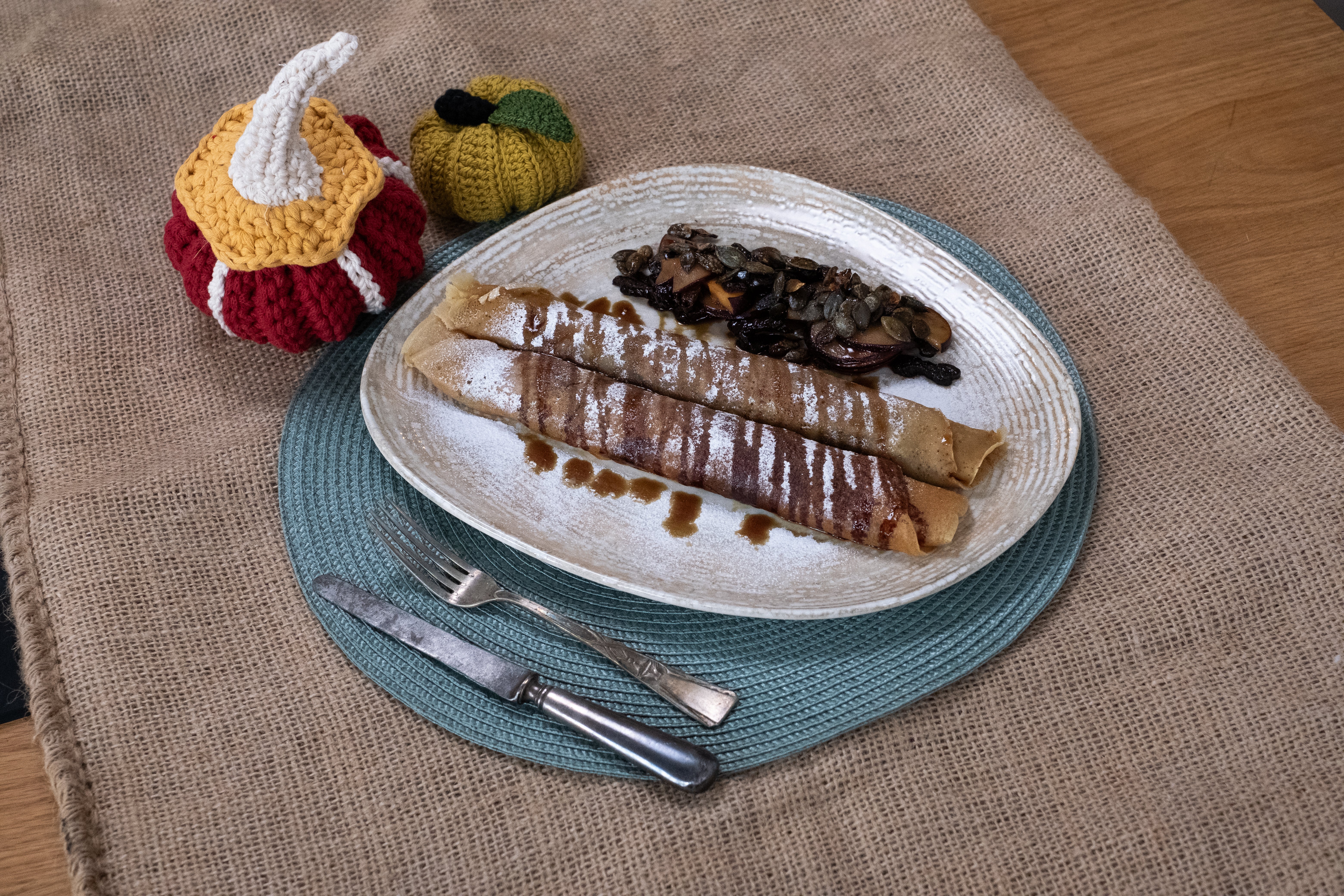 Tökmagolajos palacsinta szilvával és tökmag grillázzsal