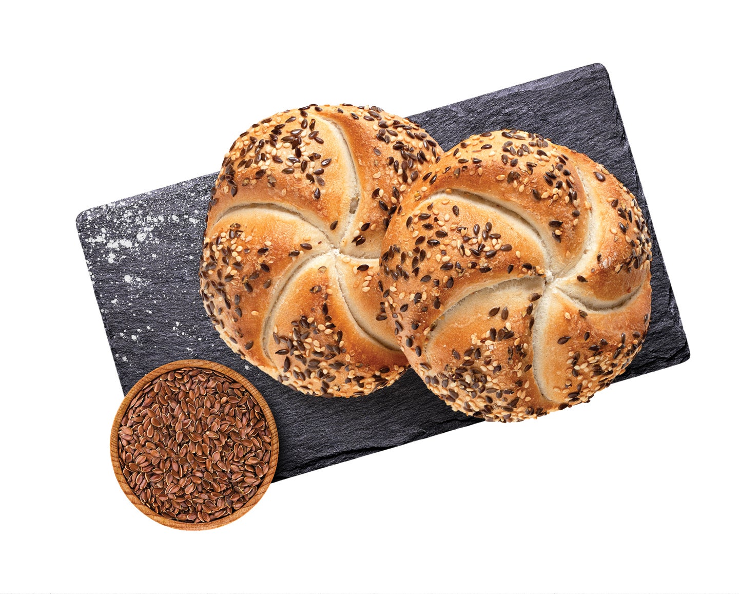 Elősütött, gyorsfagyasztott, készre sütött sokmagvas császárbuci.