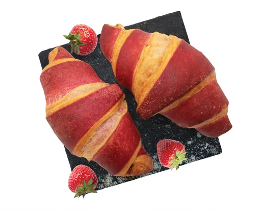 BÚZALISZT, víz, szamócás töltelék 14 % [szamóca 45 %, cukor, glükóz-fruktóz szirup, zselésítőanyag: pektin, savanyúságot szabályozó anyag: citromsav, tetranátrium-difoszfát; tartósítószer: szorbinsav; aromák], margarin [növényi zsírok és olajok (pálma, repce, kókusz, napraforgó változó arányban), víz, emulgeálószer: zsírsavak mono- és digliceridjei, napraforgó lecitinek; só, tartósítószer: szorbinsav; aroma, savanyúságot szabályozó anyag: citromsav, színezék: karotinok], cukor, élesztő, VAJ, BÚZAGLUTÉN, sütőipari keverék [BÚZAFEHÉRJE, BÚZALISZT, emulgeálószer: zsírsavak mono- és digliceridjeinek mono- és diacetil-borkősav észterei; sovány TEJPOR, növényi olaj (repce), lisztkezelő szer: aszkorbinsav], só, színezék: kármin, sütőipari keverék (BÚZAGLUTÉN, BÚZALISZT, emulgeálószer: zsírsavak mono- és digliceridjeinek mono- és diacetil-borkősav észterei, stabilizátor: guargumi, lisztkezelő szer: aszkorbinsav), TEJFEHÉRJÉK, módosított keményítő, emulgeálószer: zsírsavak mono- és digliceridjei, aroma (nedvesítőszer: gliceril-triacetát, savanyúságot szabályozó anyag: tejsav, ecetsav).