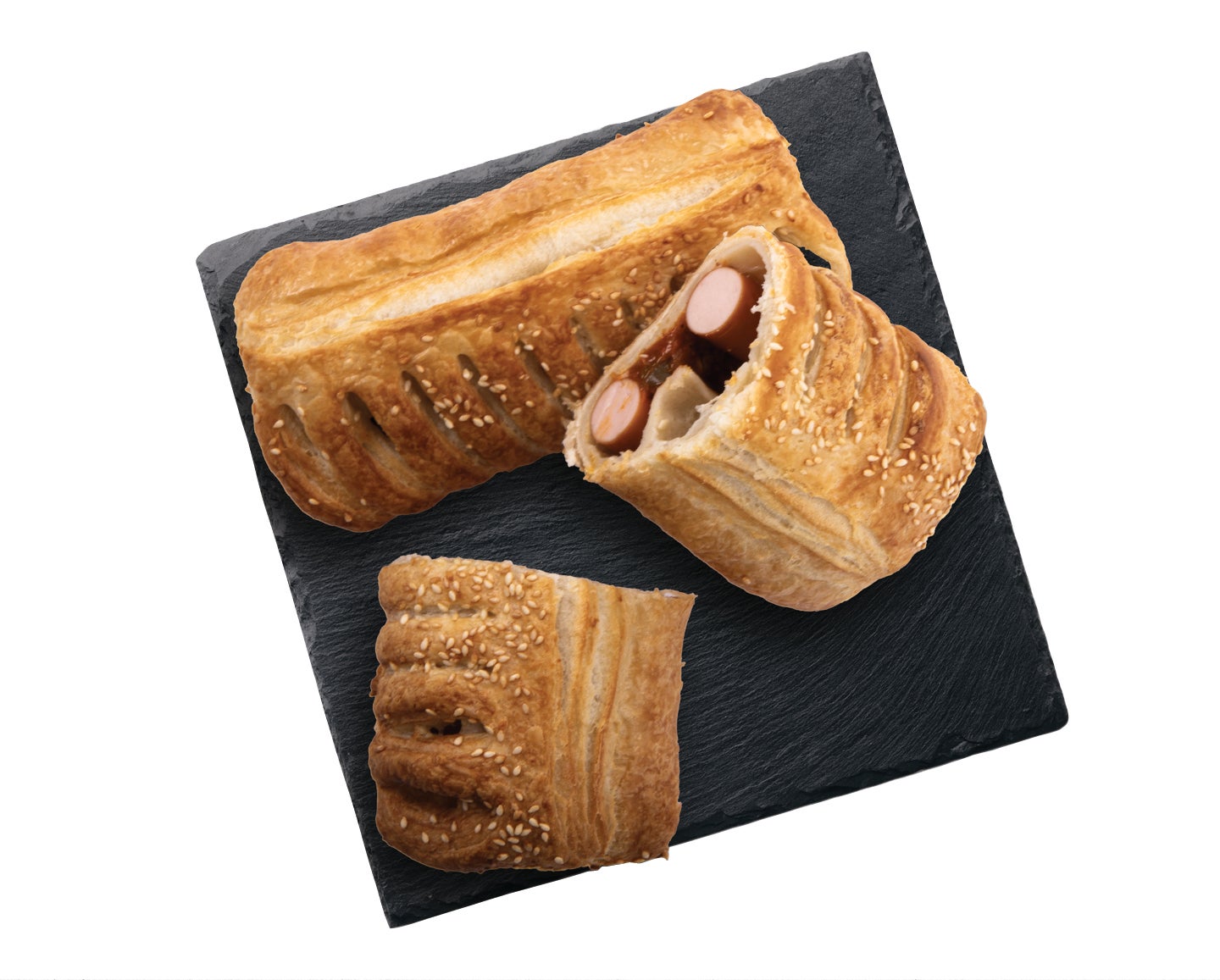 Előkelesztett, gyorsfagyasztott, készre sütött leveles tészta virslivel és mexikói fűszerezésű, zöldséges töltelékkel