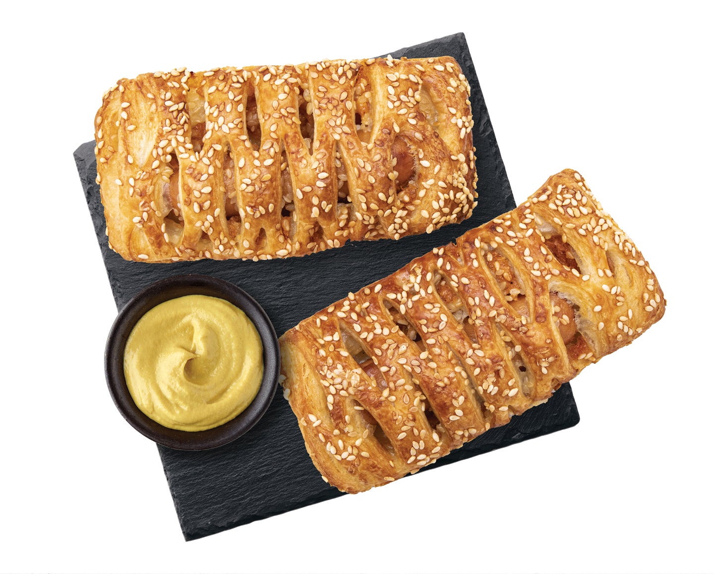 Összetevők: tészta [BÚZALISZT, ivóvíz, margarin [finomított növényi olajok és zsírok (pálma, napraforgó, repce változó arányban), ivóvíz, étkezési só, emulgeálószer: zsírsavak mono- és digliceridjei, savanyúságot szabályozó anyag: citromsav], élesztő, jódozott só (étkezési só, kálium-jodát), cukor, BÚZAGLUTÉN, módosított keményítő, emulgeálószer: zsírsavak mono- és digliceridjei, zsírsavak mono- és digliceridjeinek mono- és diacetil-borkősav-észterei; lisztkezelő szer: aszkorbinsav, enzimek]; virslis töltelék (36,5%) [sertésvirsli (72,6%) (sertéshús, csirkehús, ivóvíz, csirkezsír, étkezési só, csirke kötőszövet, glükóz, SZÓJAFEHÉRJE, stabilizátor: difoszfátok, nátrium-citrátok; ízfokozó: mononátrium-glutamát, antioxidáns: nátrium-eritroaszkorbát, fűszerek, fűszerkivonatok, sertésfehérje kollagén, tartósítószer: nátrium-nitrit), ketchup (ivóvíz, sűrített paradicsom, cukor, ecet, módosított keményítő, étkezési só, tartósítószer: nátrium-benzoát, kálium-szorbát; fűszerkivonat), mustár (ivóvíz, MUSTÁRMAG (fehér, fekete), ecet, cukor, étkezési só, fűszerek, kurkumakivonat), módosított keményítő, feketebors]; felület [ivóvíz, SZEZÁMMAG, TOJÁSSÁRGÁJAPOR].
